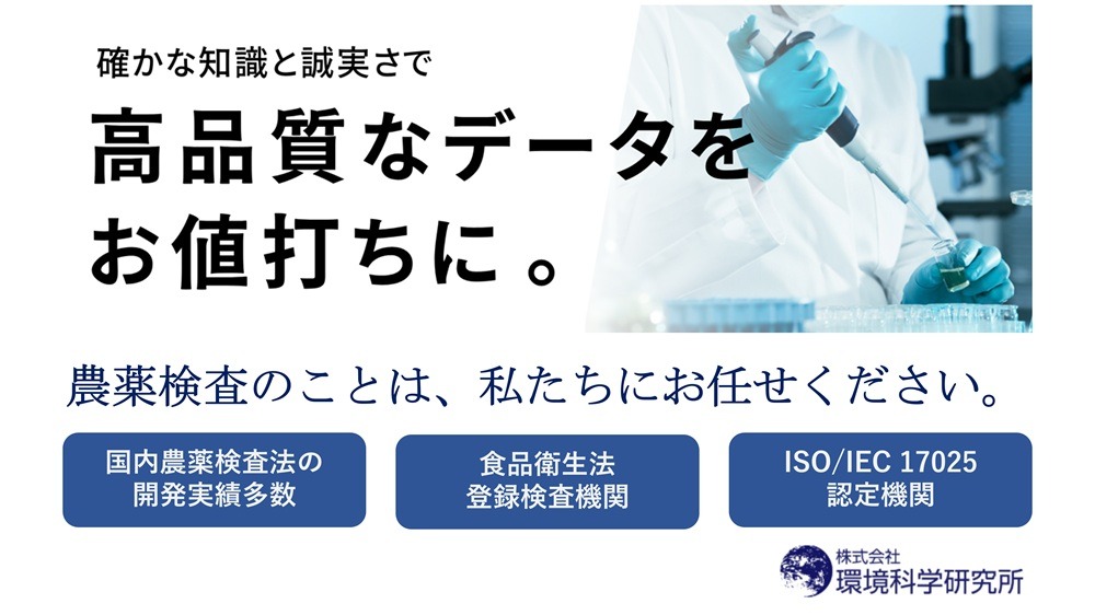 私たちの強み | 食品の残留農薬分析においては、農薬メーカーの子会社としてポジティブリスト制度施行以前より積極的な検査の展開を推進し、豊富な知識と経験、精度の高い技術を駆使して実際の農薬登録状況に基づきお客様の要望に沿った独自の分析メニューを開発しております。 また、弊社は食品衛生法登録検査機関、ISO/IEC 17025認定試験所及び日本GAP協会が推奨する検査機関として様々なリスク評価のご要望にお応え致します。 今後も食の安全と安心に応え、残留農薬分析を通じて社会に貢献して参ります。 |