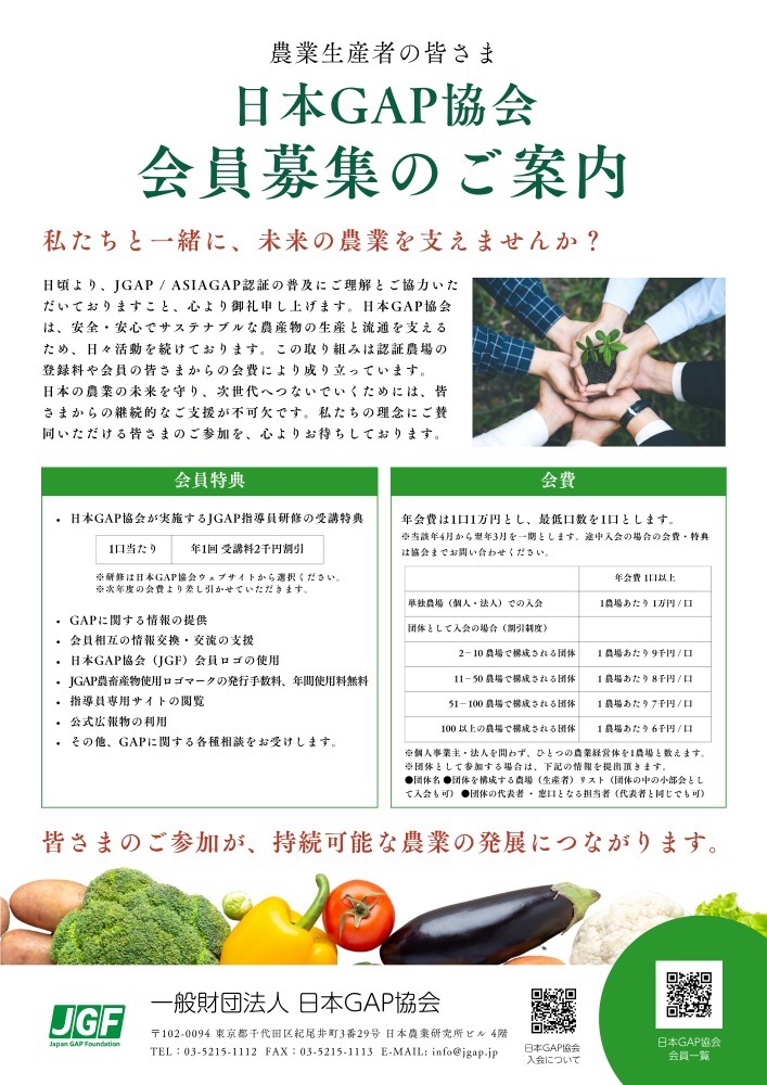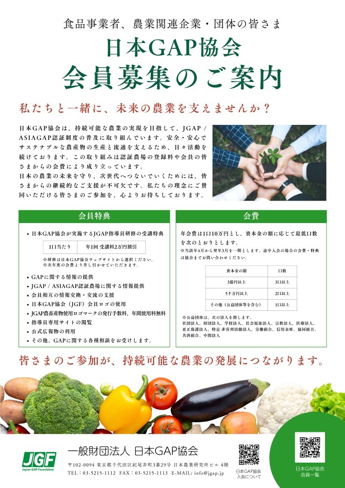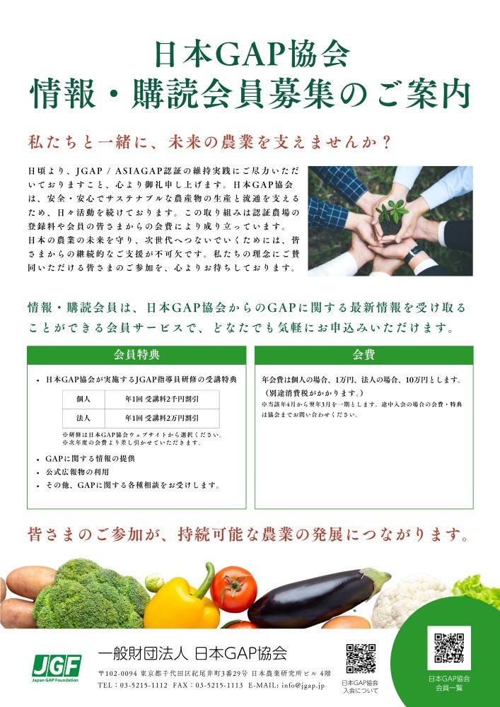 日本GAP協会の会員は、「ASIAGAP/JGAP」の開発・普及を支援いただくだけでなく、共に活動する同志でもあります。その会員特典は、次の通りです。
