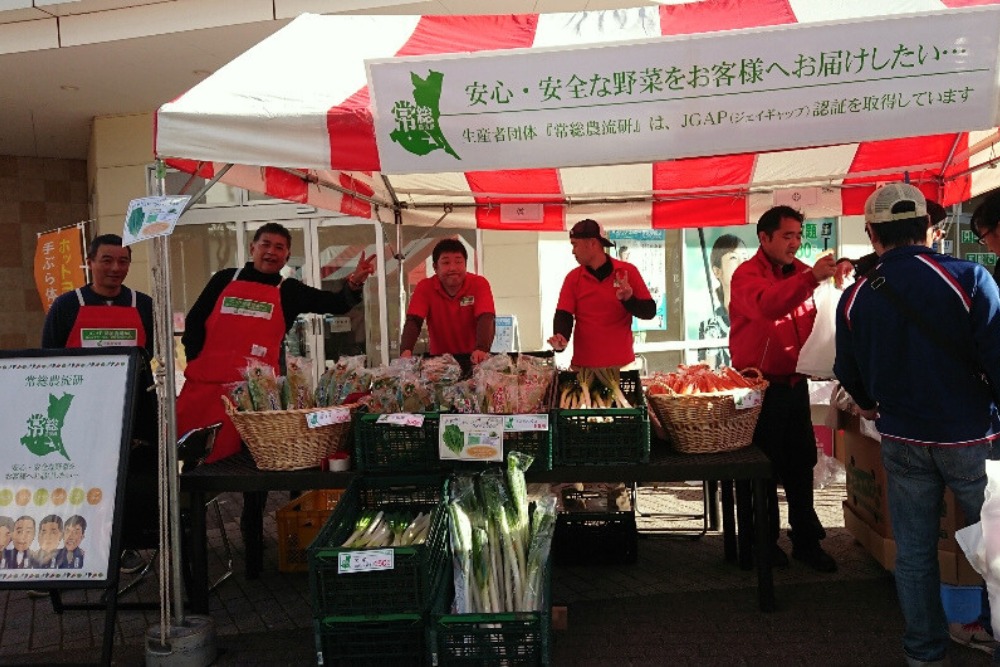 資材販売にとどまらず、生産者育成の観点から、JGAP認証の取得と組織化による販路確保を両立させる仕組みを構築。「いばらき農産物流通研究会」、「常総農流研」で団体認証を取得し、個別認証の農場も加えた31農場が20品目以上を出荷しています。